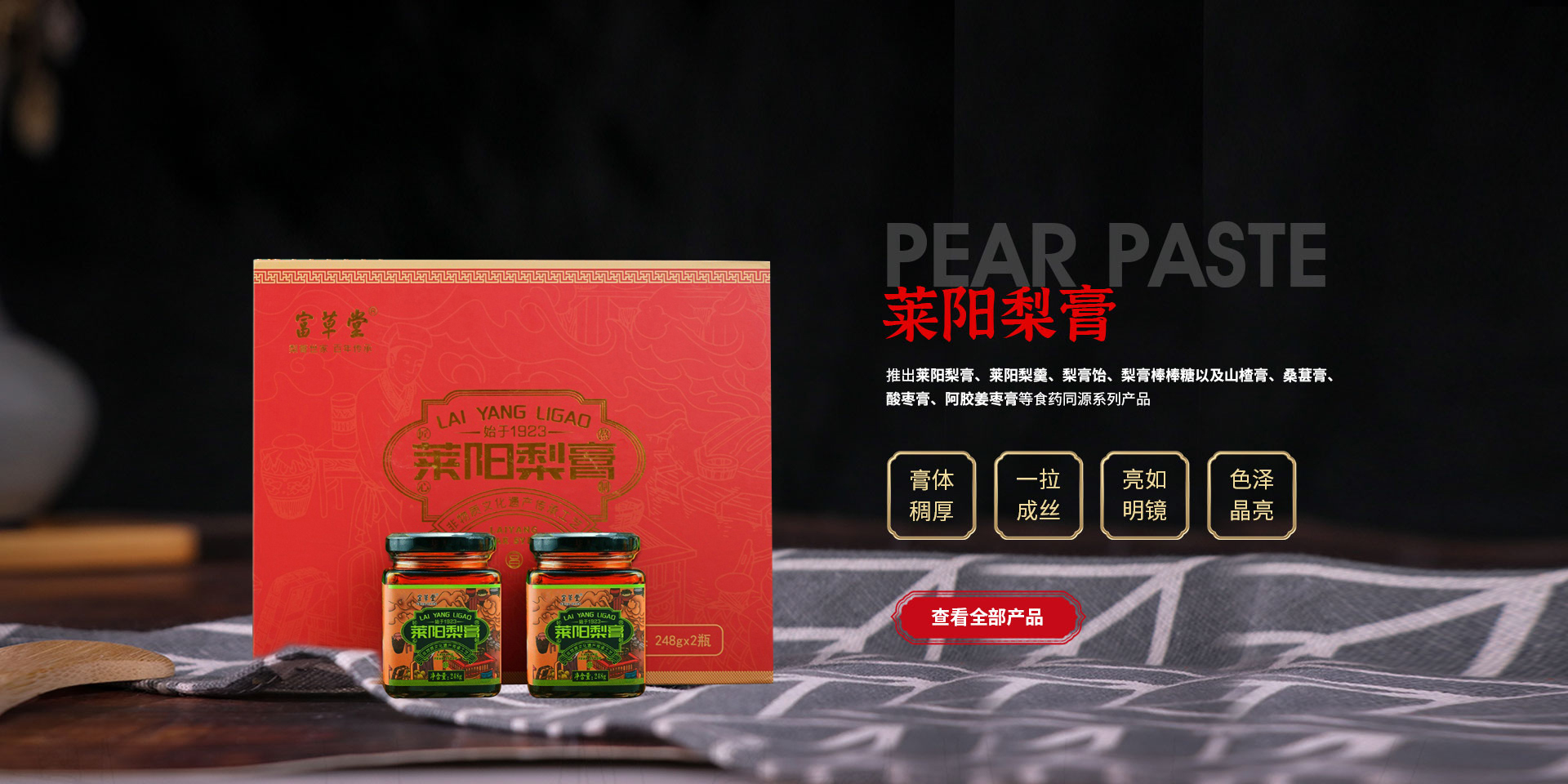 萊陽市昌榮食品有限公司成立于2003年,占地面積2萬余平方米,自有萊陽梨種植基地800余畝,年加工能力50萬噸,是一家集基地種植、原料倉儲、科技研發(fā)、生產(chǎn)加工、市場營銷、文化旅游為一體的集團(tuán)化公司。 公司的“富草堂”品牌,源于1923年創(chuàng)辦的“富草堂大藥房”,距今已有百年歷史......